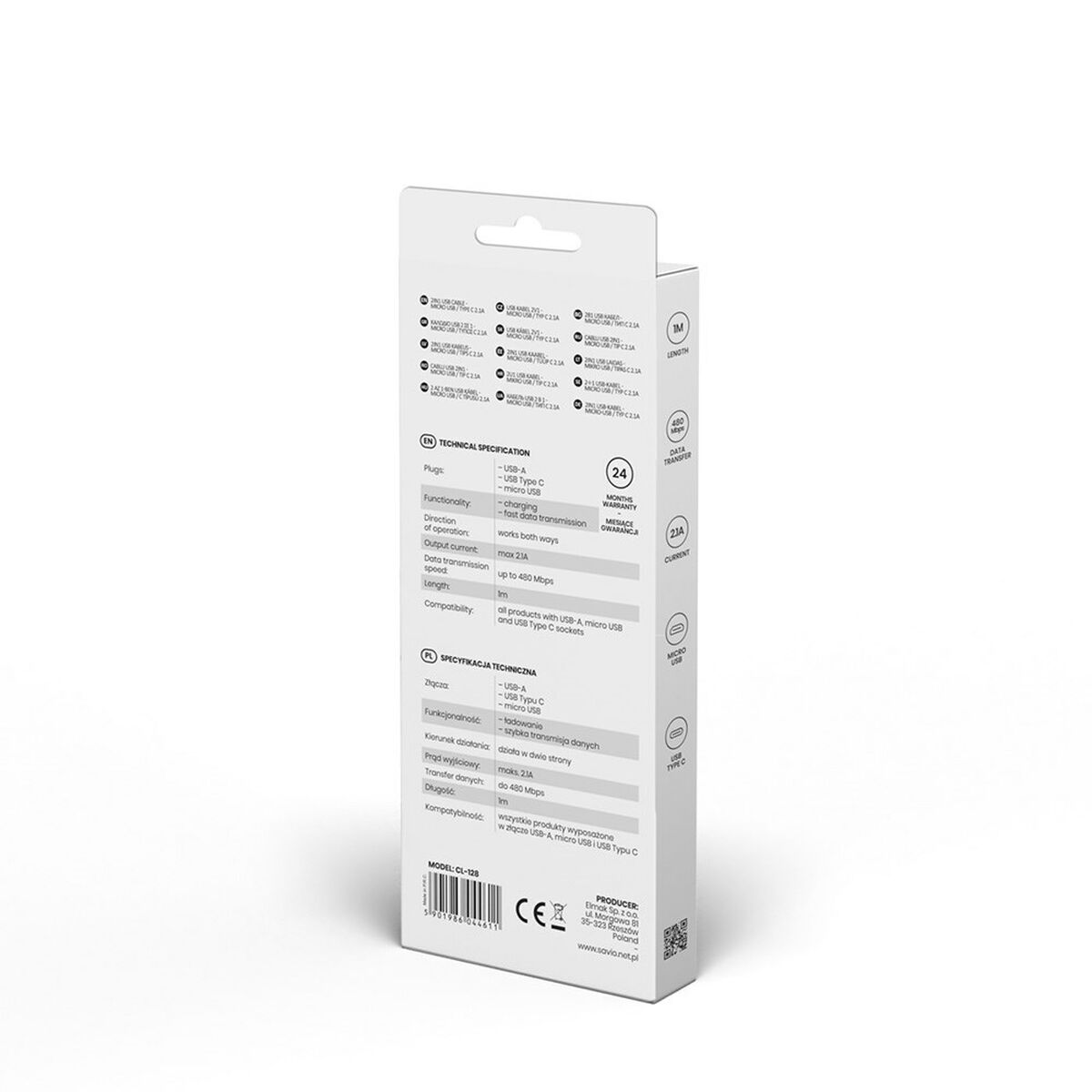 Καλώδιο USB σε Micro USB και USB C Savio CL-128 Μαύρο 1 m